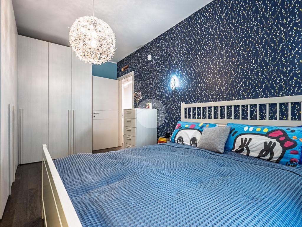 La zona giorno è separata dalla zona notte tramite un comodo disimpegno che conduce al bagno finestrato completo di doccia e vasca, un secondo bagno adibito a lavanderia e due camere da letto, di cui la camera matrimoniale con affaccio su un terrazzo privato che grazie alla sua posizione gode di tranquillità e riservatezza.