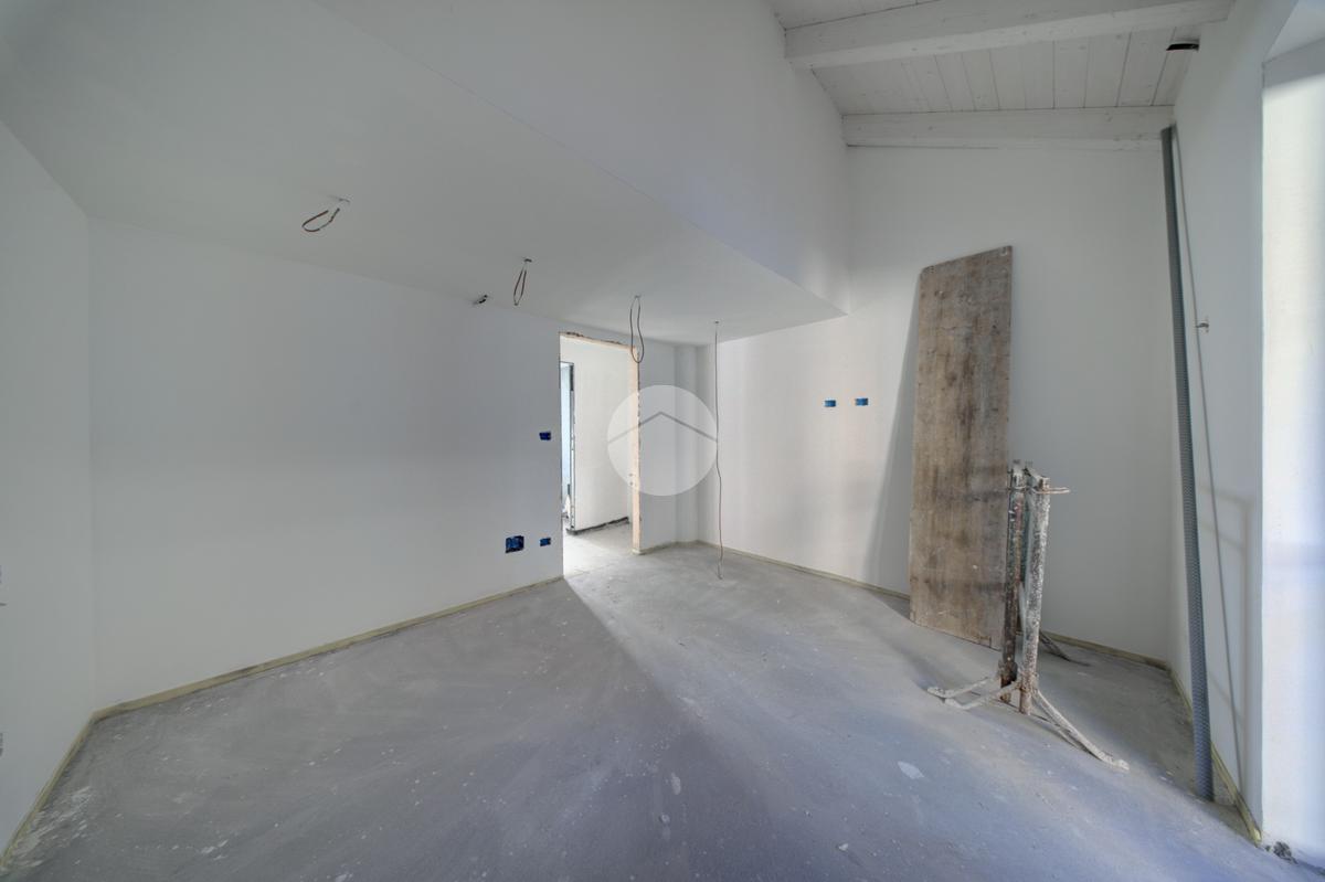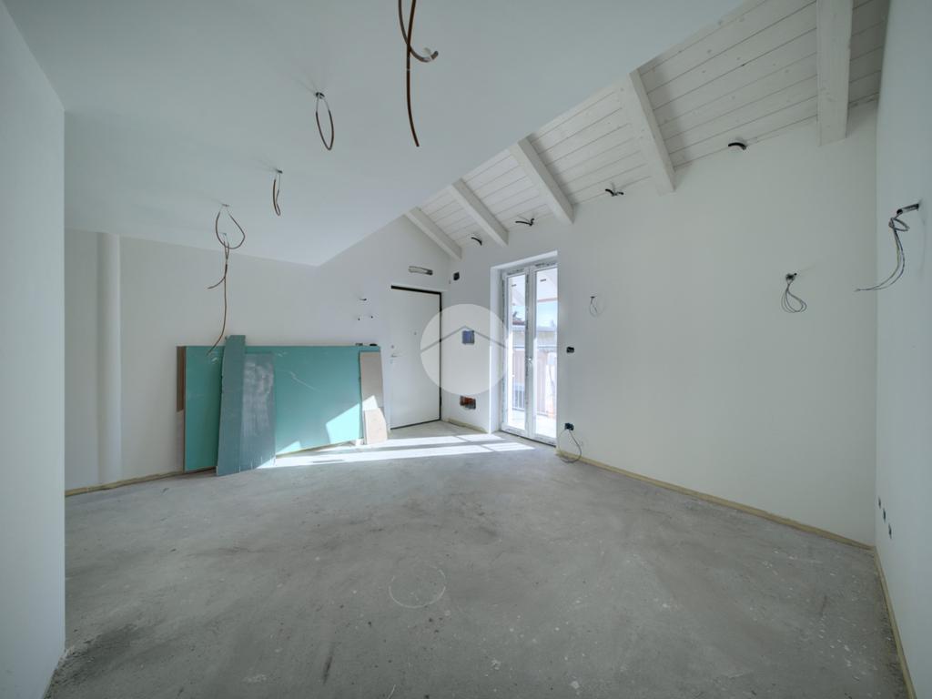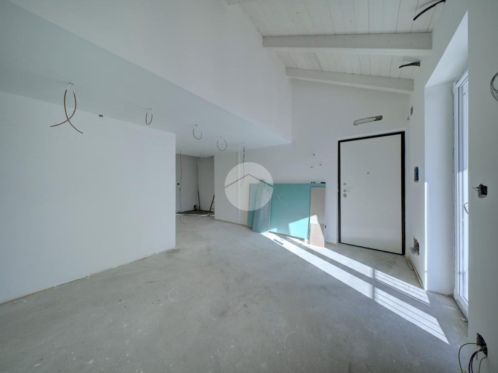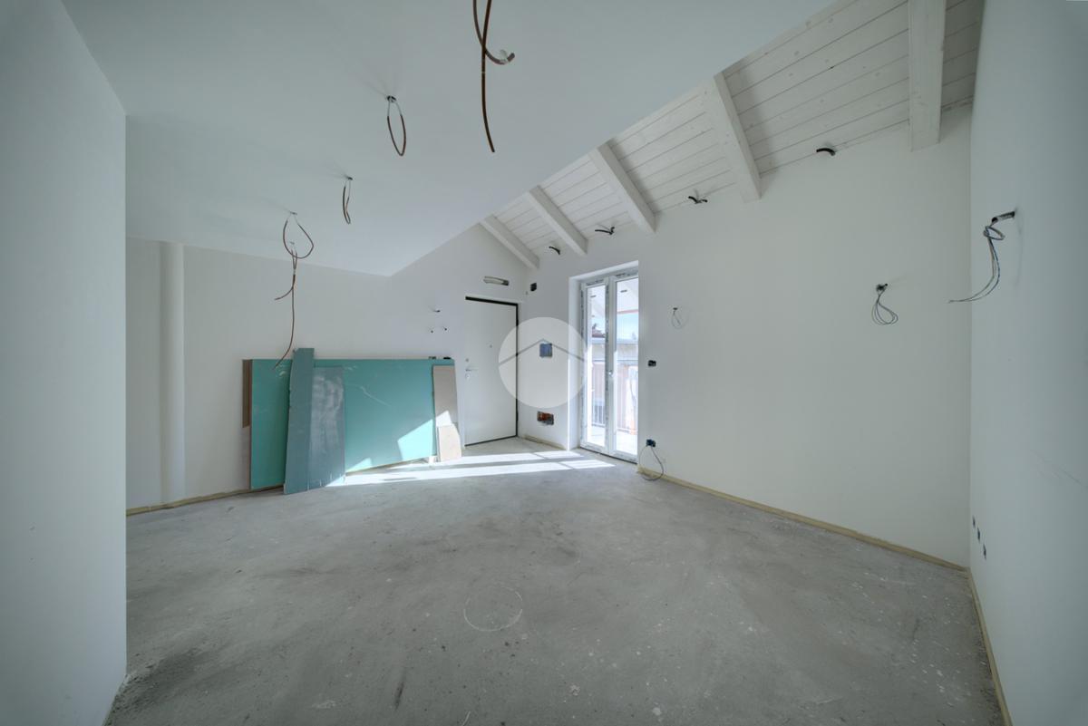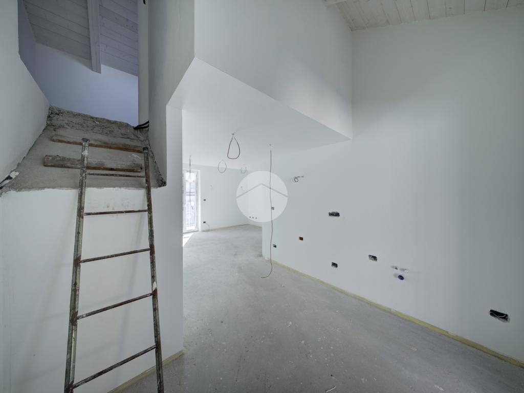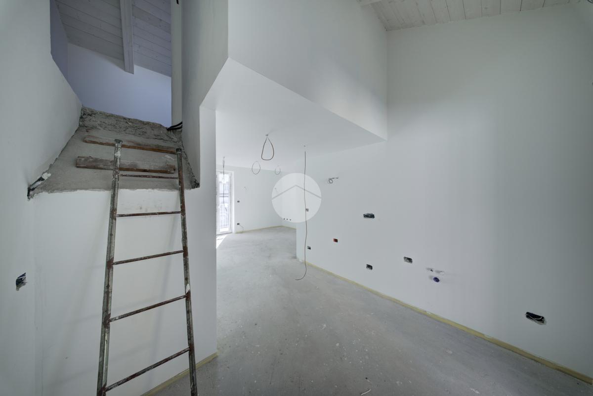 L'alloggio è dotato di un'ampia zona giorno living con angolo cottura, di una zona notte con camera da letto matrimoniale e servizio finestra. Tramite scala interna si accede al piano soppalcato rifinito e dotato di velux con la possibilità di creare un ulteriore camera da letto e secondo servizio.