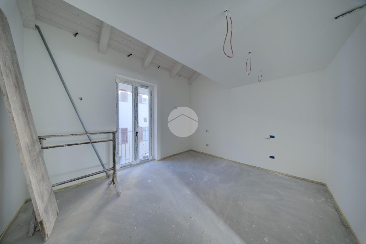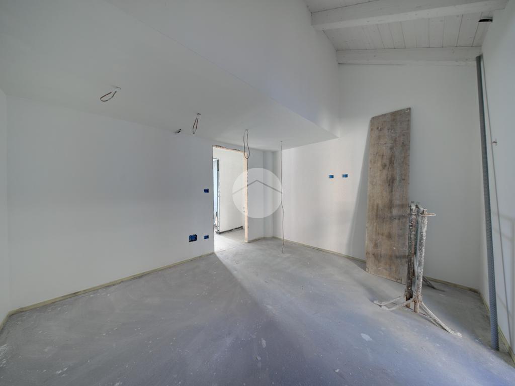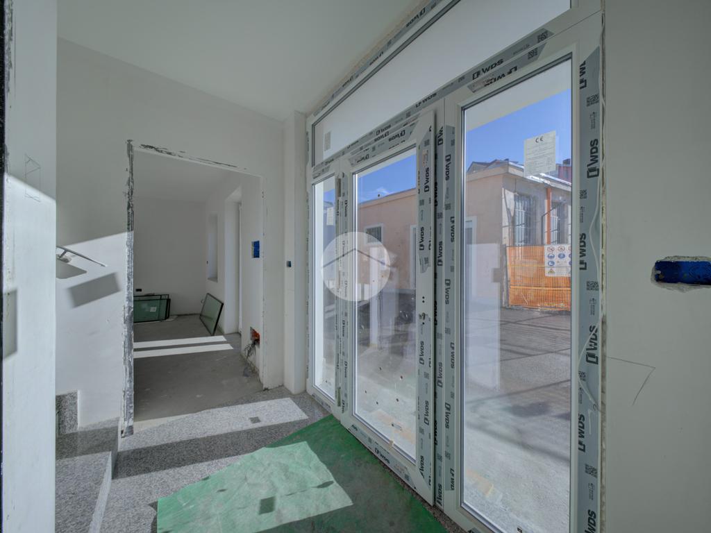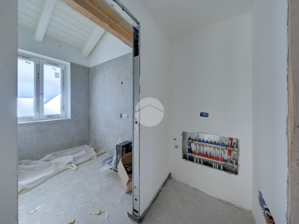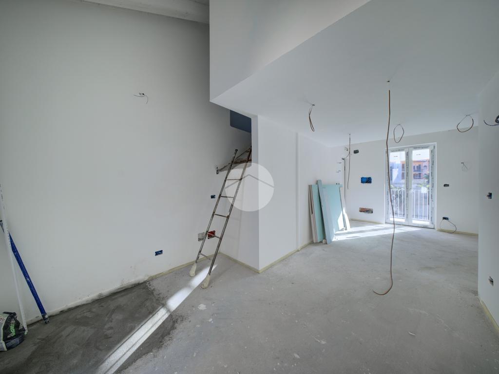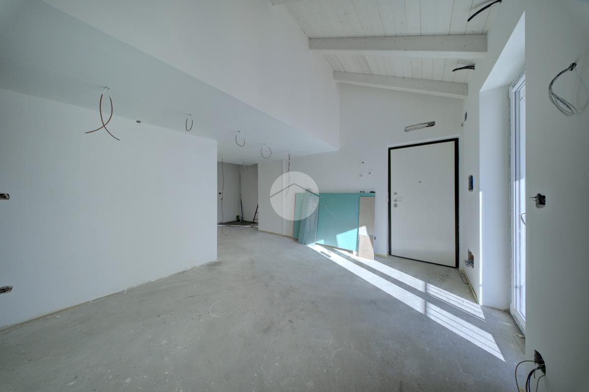 L'alloggio è dotato di un'ampia zona giorno living con angolo cottura, di una zona notte con camera da letto matrimoniale e servizio finestra. Tramite scala interna si accede al piano soppalcato rifinito e dotato di velux con la possibilità di creare un ulteriore camera da letto e secondo servizio.