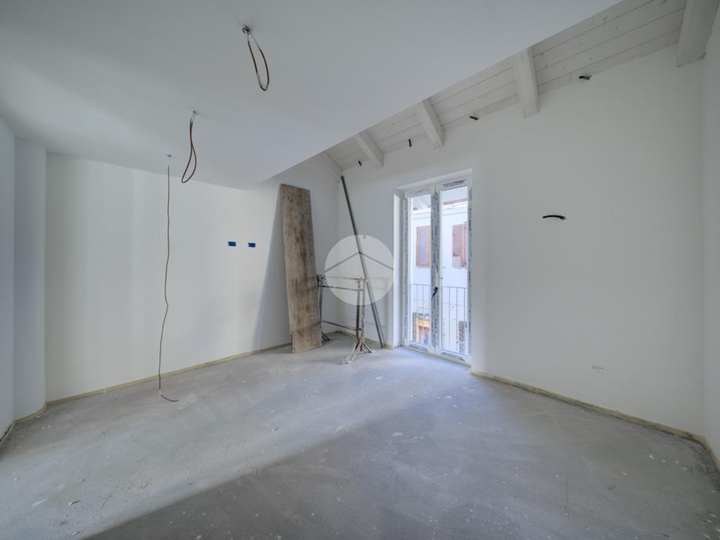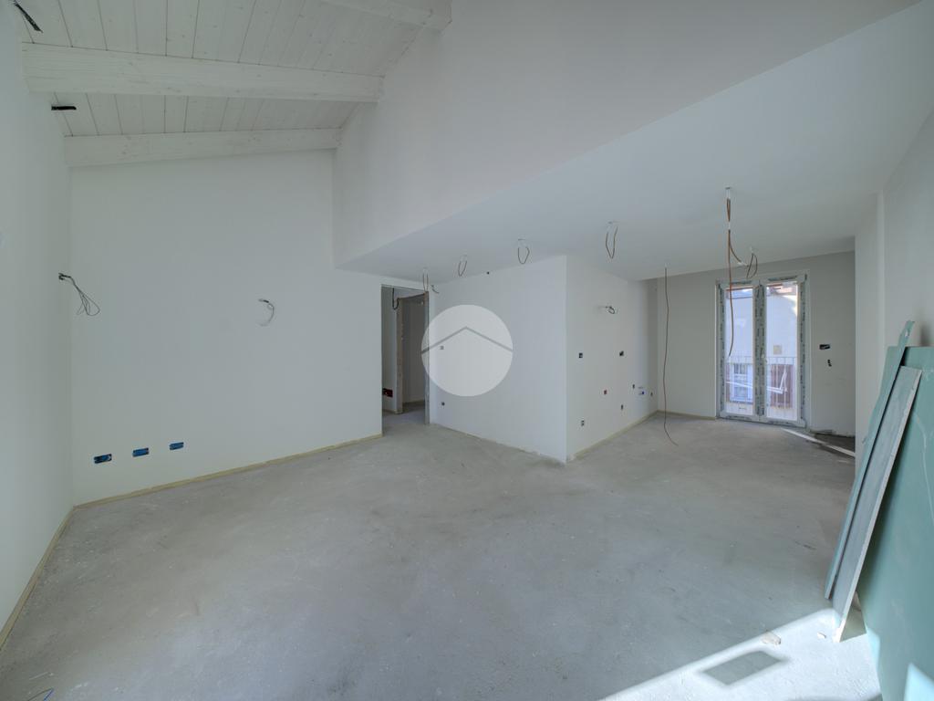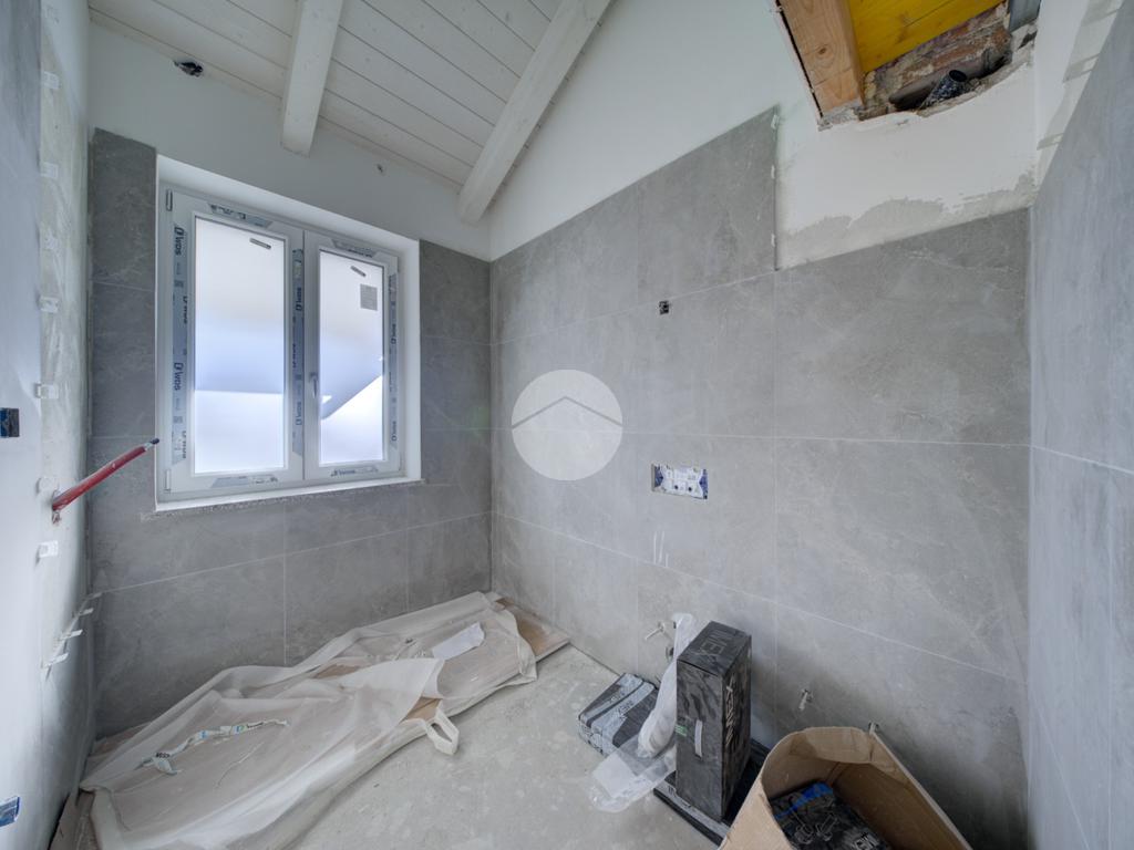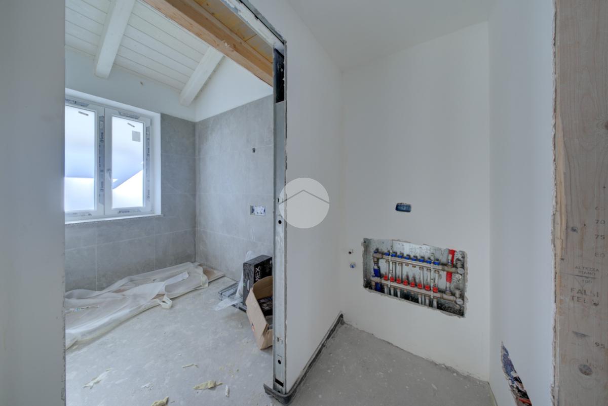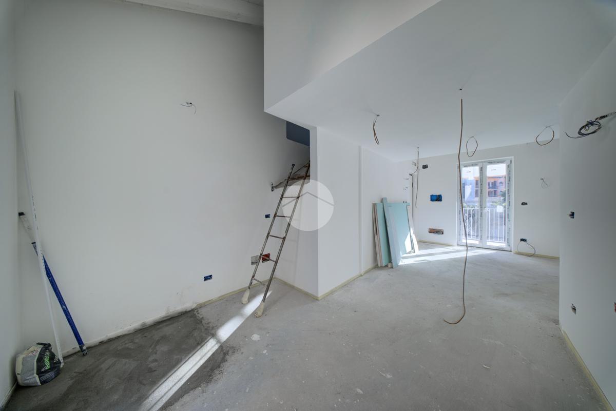 L'alloggio è dotato di un'ampia zona giorno living con angolo cottura, di una zona notte con camera da letto matrimoniale e servizio finestra. Tramite scala interna si accede al piano soppalcato rifinito e dotato di velux con la possibilità di creare un ulteriore camera da letto e secondo servizio.