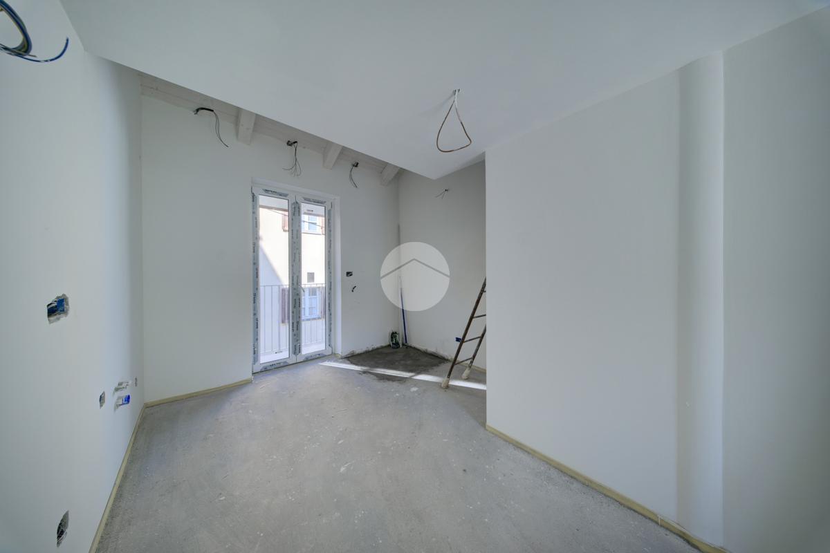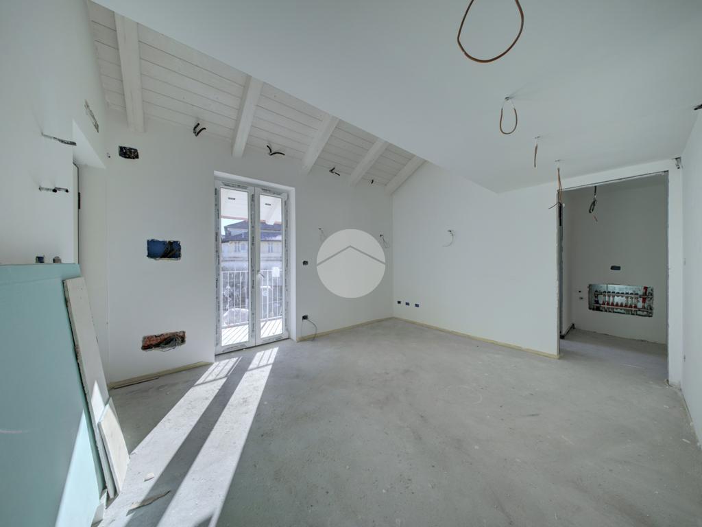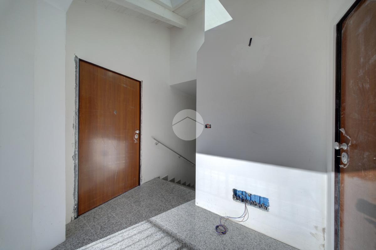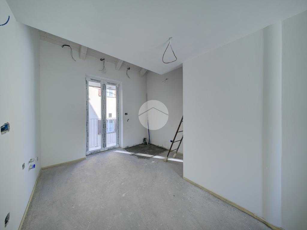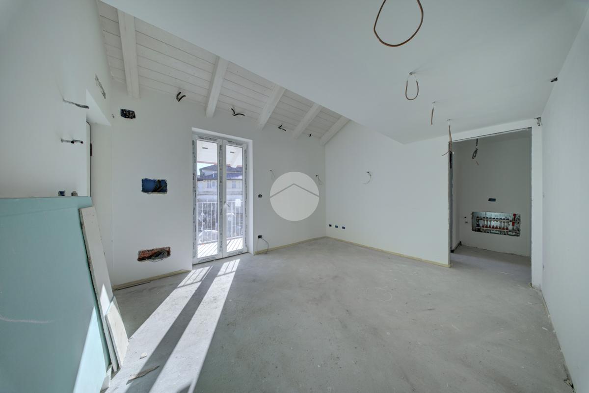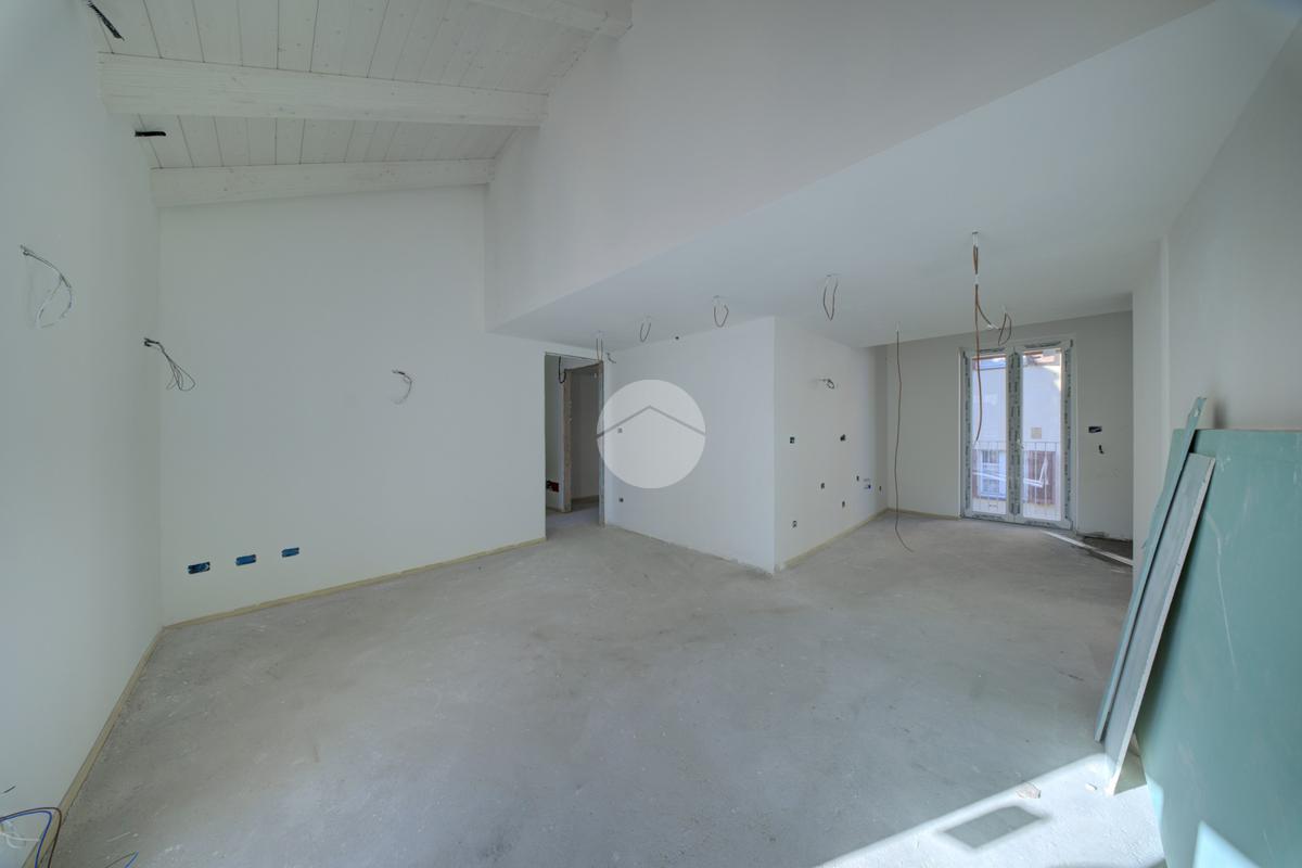 L'alloggio è dotato di un'ampia zona giorno living con angolo cottura, di una zona notte con camera da letto matrimoniale e servizio finestra. Tramite scala interna si accede al piano soppalcato rifinito e dotato di velux con la possibilità di creare un ulteriore camera da letto e secondo servizio.