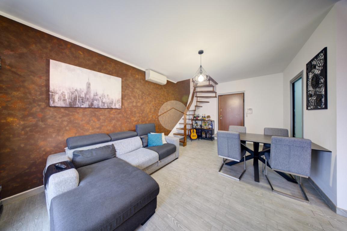 Un ampio terrazzo panoramico, collegato alla zona giorno, offre uno spazio esterno esclusivo ideale per momenti di relax all’aria aperta e garantisce un’eccellente luminosità agli ambienti interni.