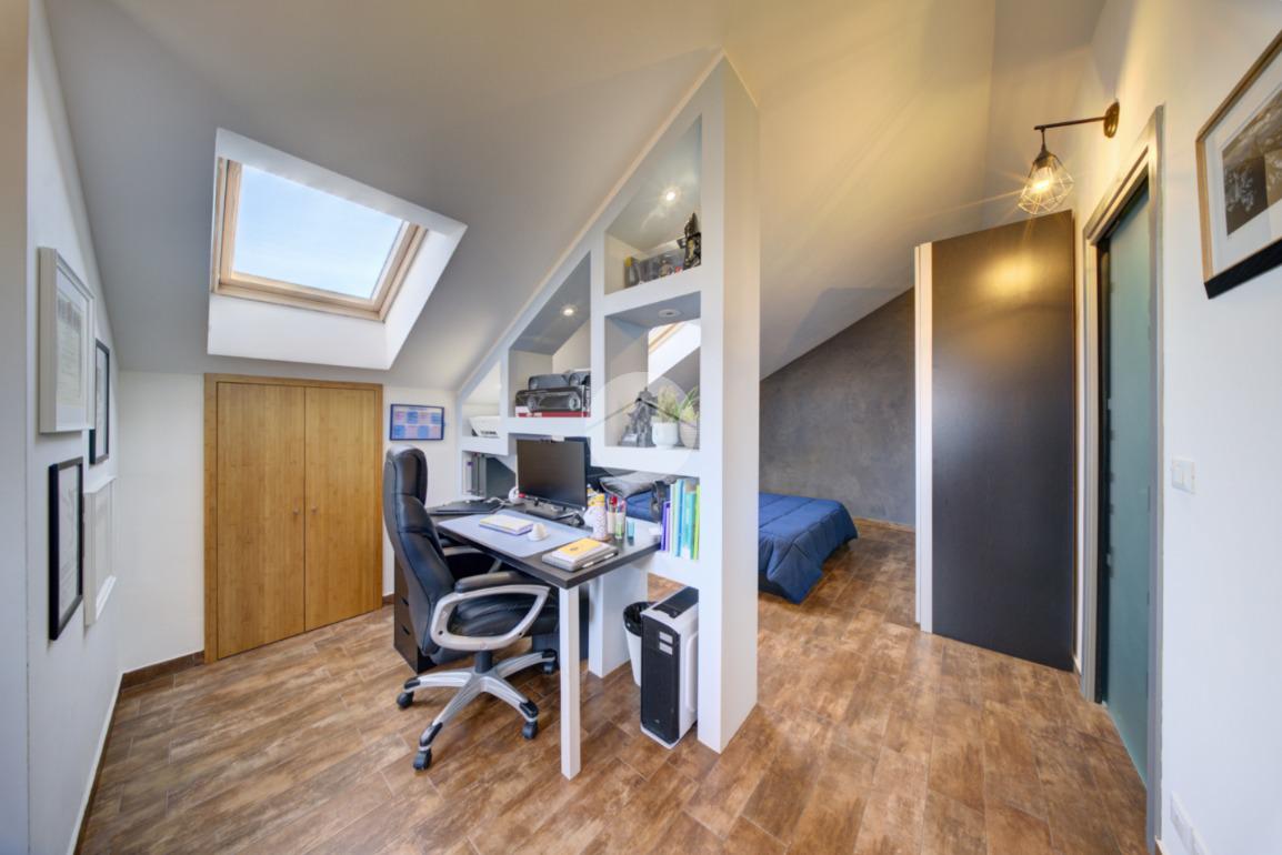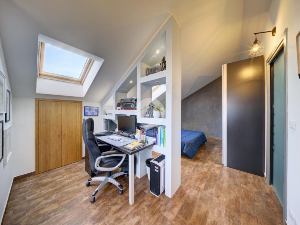 Tramite scala interna si accede al piano mansardato completamente fruibile, dotato di velux e finestre, composto da una camera matrimoniale e una seconda stanza versatile, adatta come studio, area hobby o palestra, oltre a un secondo bagno finestrato di generose dimensioni, utilizzabile anche come zona lavanderia.
