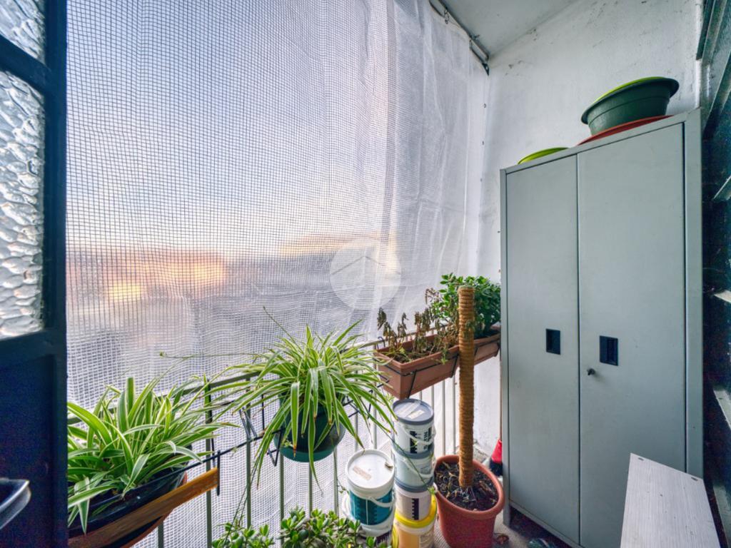 L’ingresso si apre su un comodo disimpegno che distribuisce in modo funzionale tutti gli ambienti. L’abitazione è composta da una cucina abitabile con accesso a un ampio balcone vivibile, un soggiorno che può essere facilmente trasformato in seconda camera da letto, una camera matrimoniale di generose dimensioni, un bagno finestrato completo di doccia e un pratico ripostiglio.