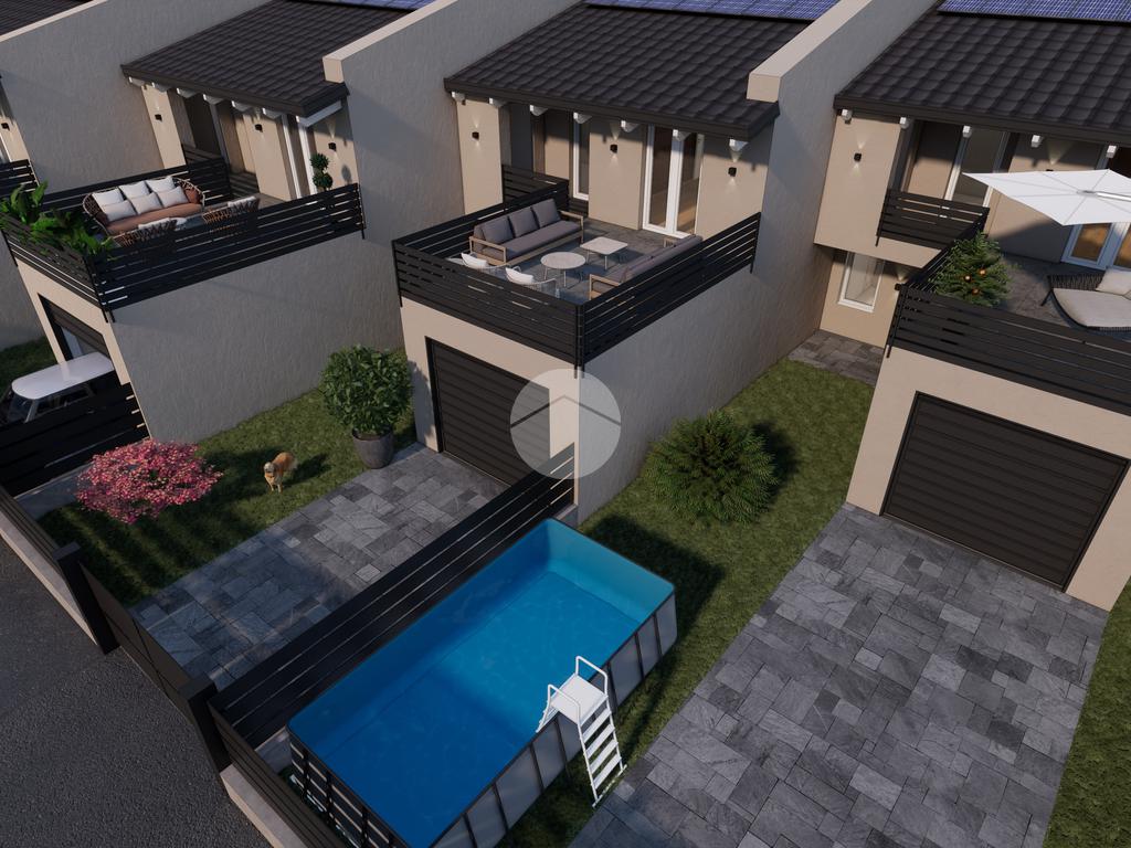 La villa è progettata con le più moderne tecnologie costruttive, come riscaldamento a pavimento, pompe di calore, pannelli fotovoltaici da 3 kW e la predisposizione per l'aria condizionata.