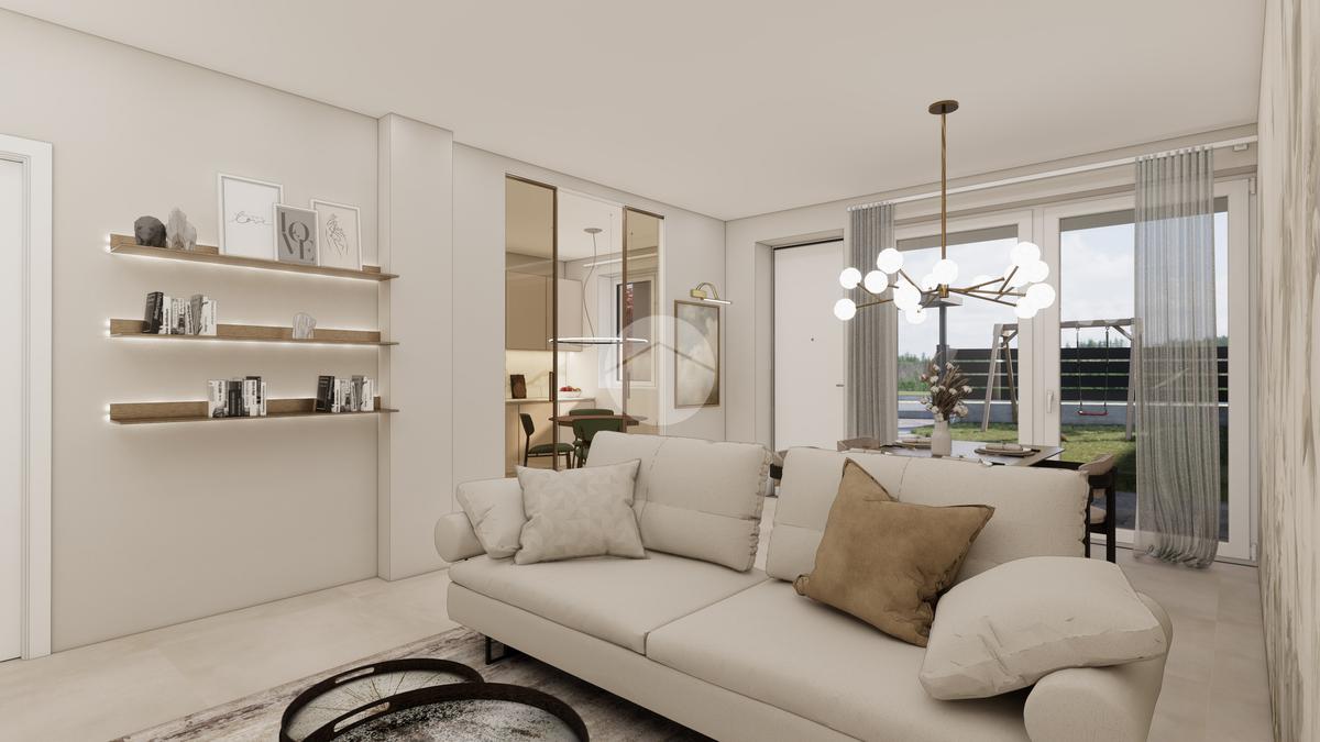 Inoltre, nella zona giorno è presente un elegante e moderno serramento scorrevole che offre un' apertura verso l'esterno a contatto con il verde.