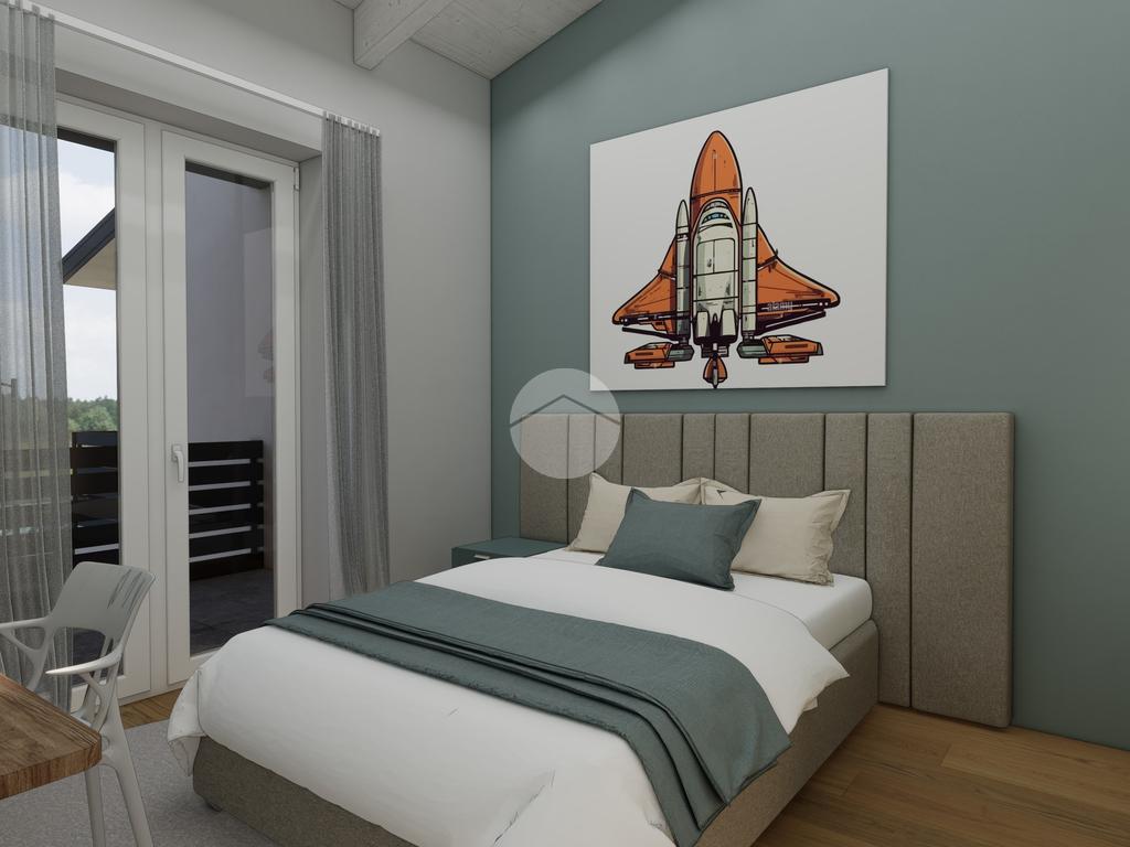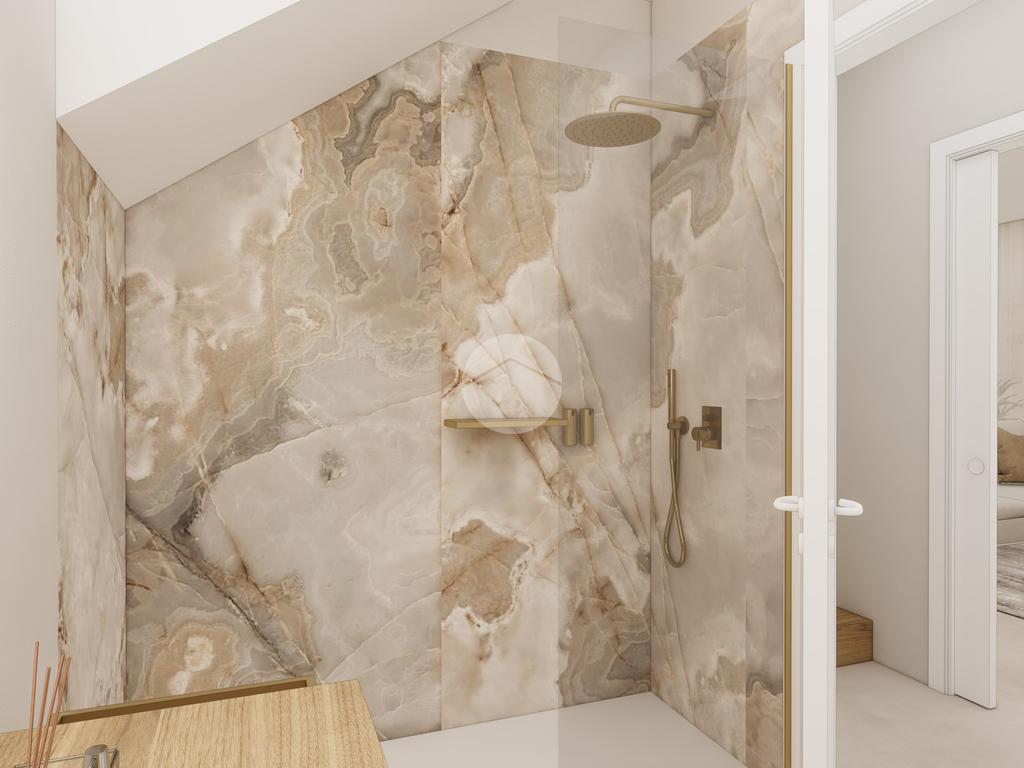 Al piano superiore, una scala interna collega la zona notte, composta da tre ampie camere da letto, con un'altezza minima di 2,55 mt e una massima di 3,90 mt, totalmente abitabili. Al piano è presente un secondo servizio. Dalla camera padronale si accede al terrazzo di 30 mq, perfetto per utilizzare gli spazi esterni con area relax e solarium.