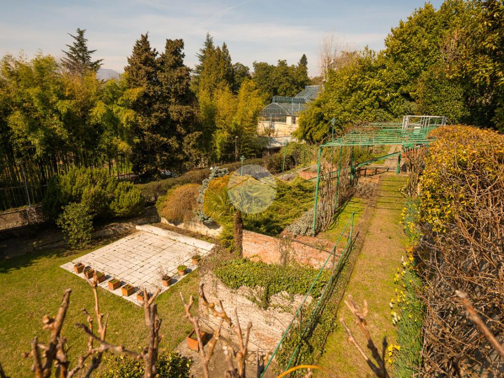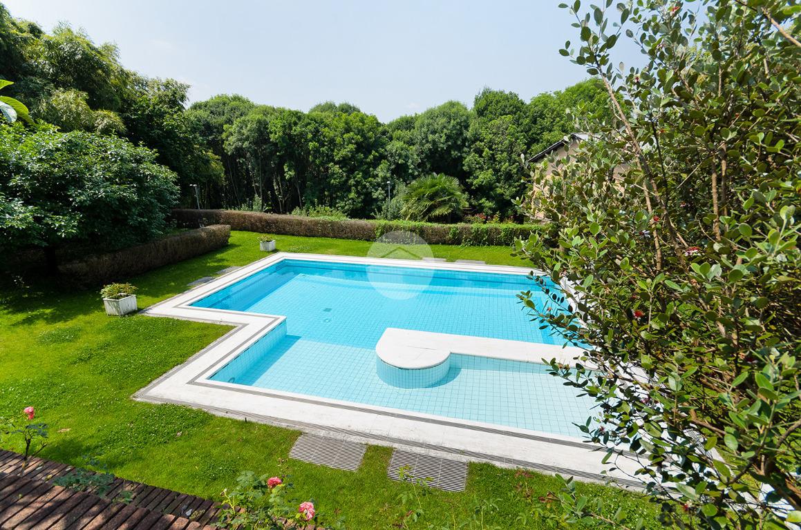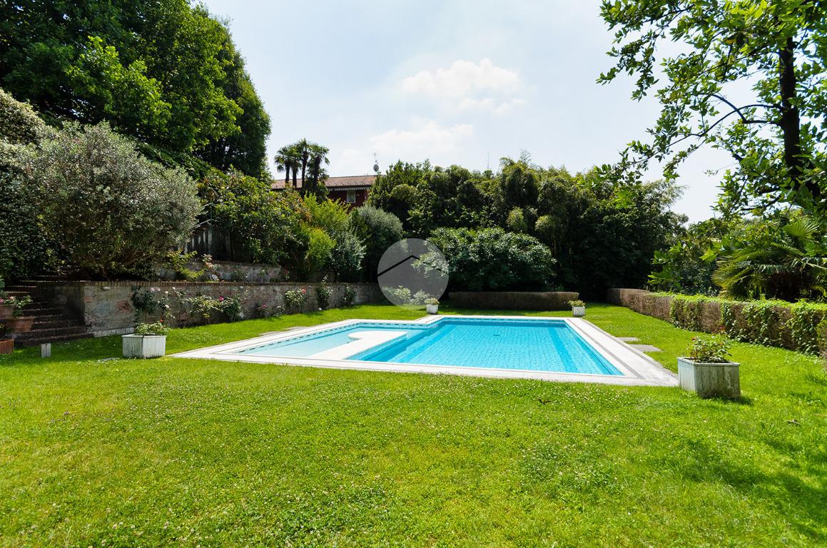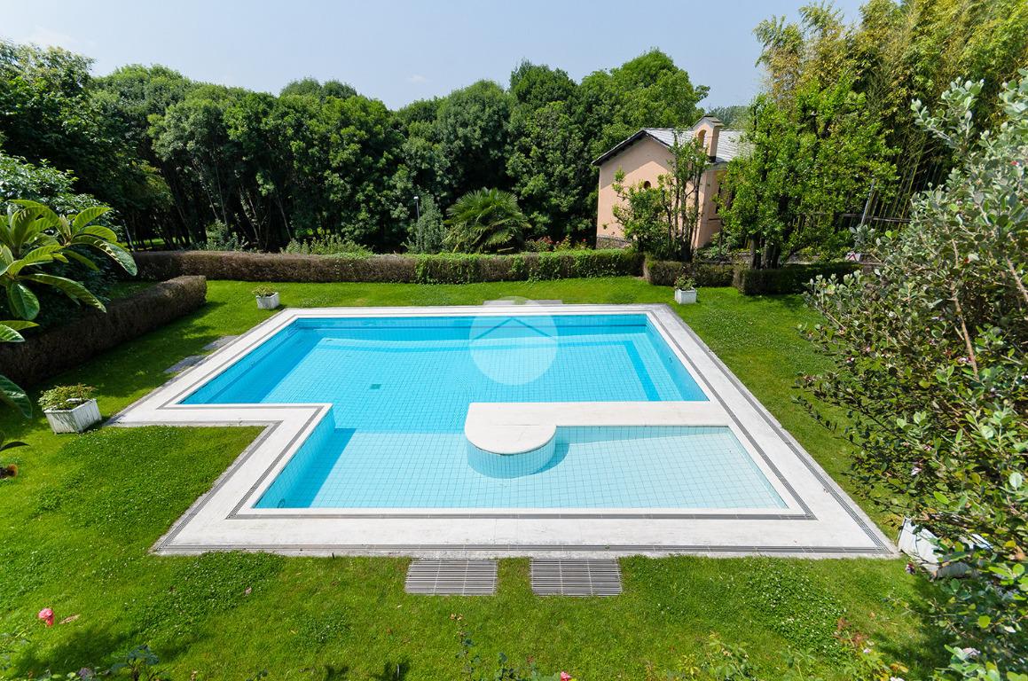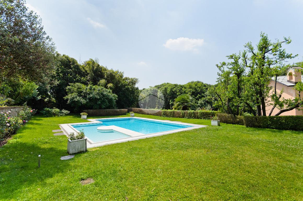 Il parco privato, perfettamente curato e impreziosito da alberi secolari ad alto fusto, è organizzato su diversi livelli terrazzati collegati da una scenografica scalinata e da un montacarichi. Nel livello inferiore si trova una grande piscina con solarium, completa di spogliatoi, bagno e area bar, ideale per momenti di relax e convivialità durante la bella stagione. Nel 2023 sono stati completamente rinnovati gli impianti di illuminazione e irrigazione del parco.