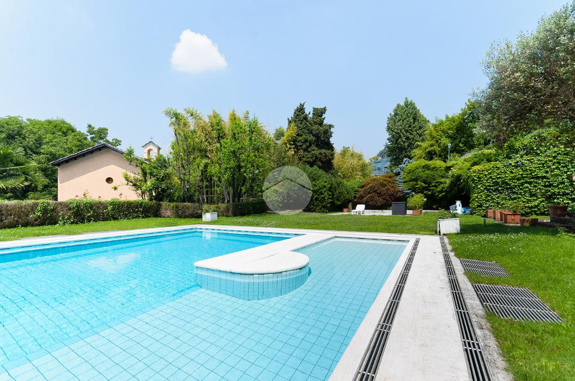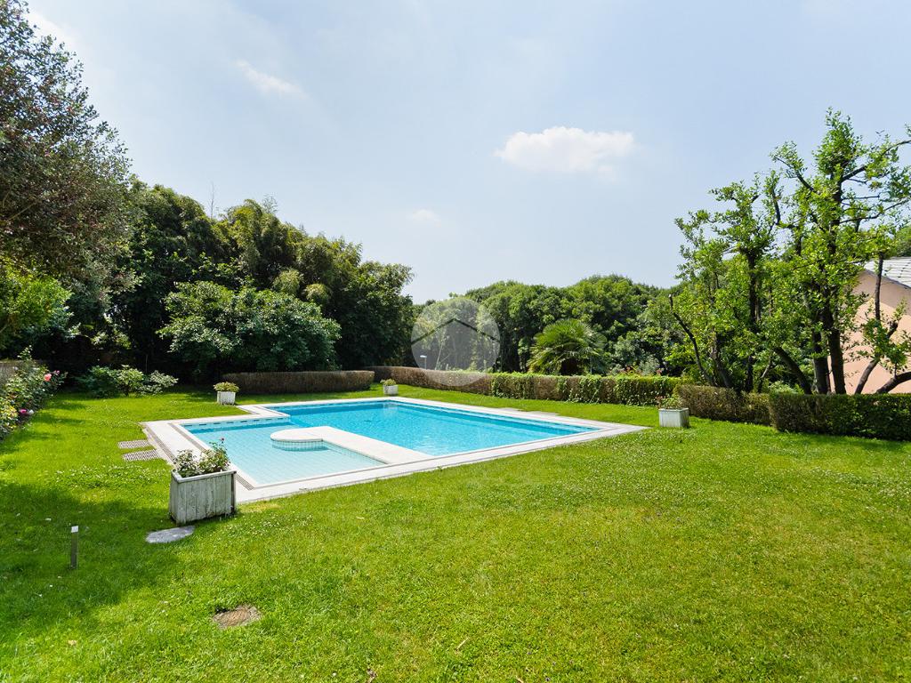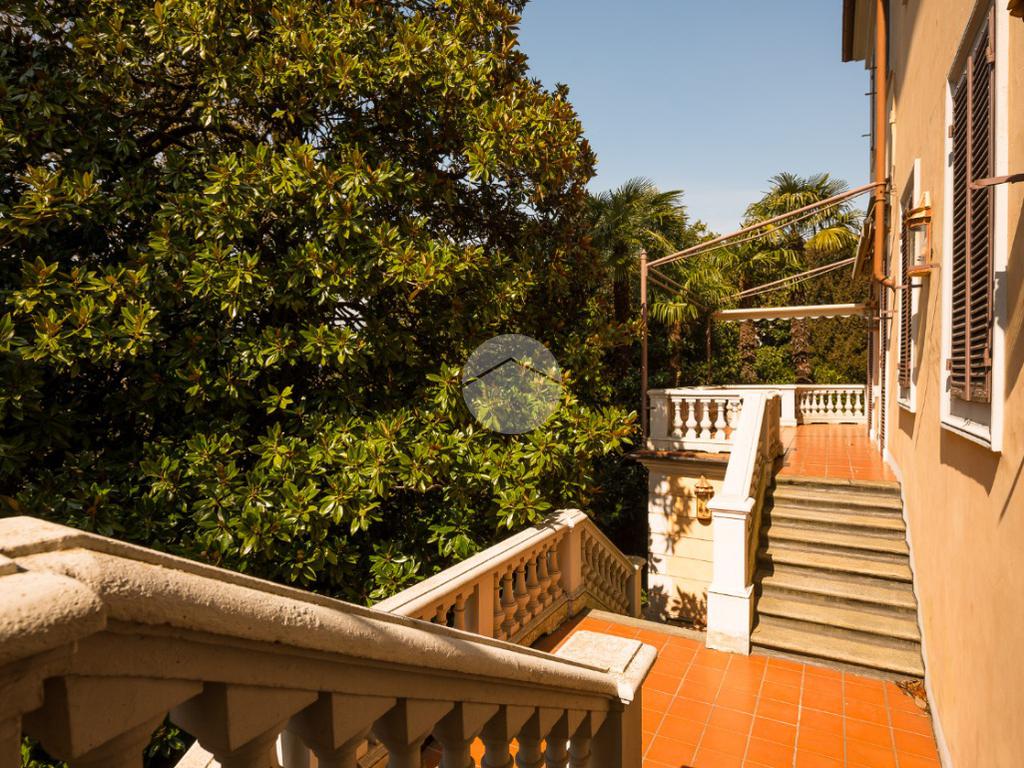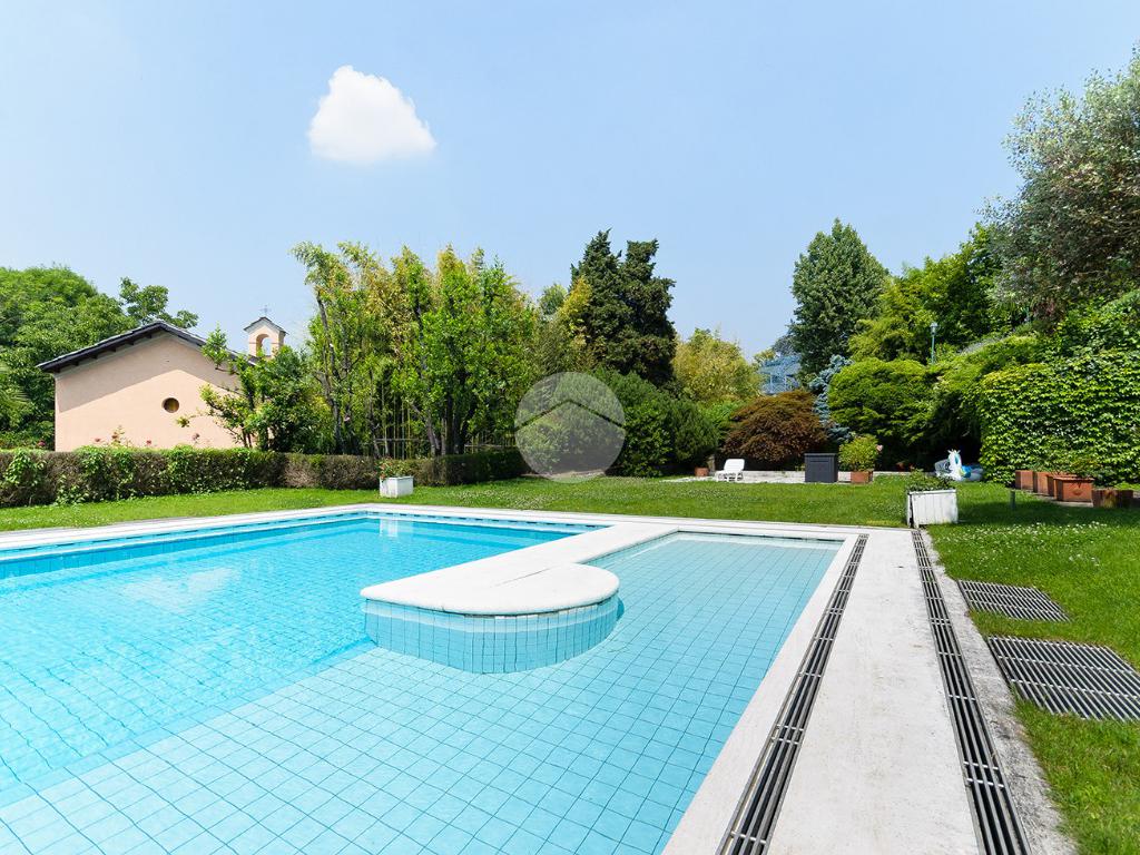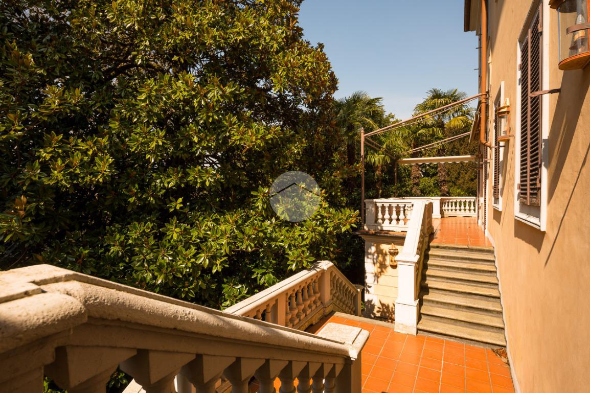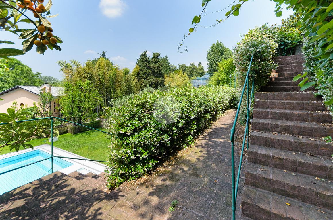 Il parco privato, perfettamente curato e impreziosito da alberi secolari ad alto fusto, è organizzato su diversi livelli terrazzati collegati da una scenografica scalinata e da un montacarichi. Nel livello inferiore si trova una grande piscina con solarium, completa di spogliatoi, bagno e area bar, ideale per momenti di relax e convivialità durante la bella stagione. Nel 2023 sono stati completamente rinnovati gli impianti di illuminazione e irrigazione del parco.