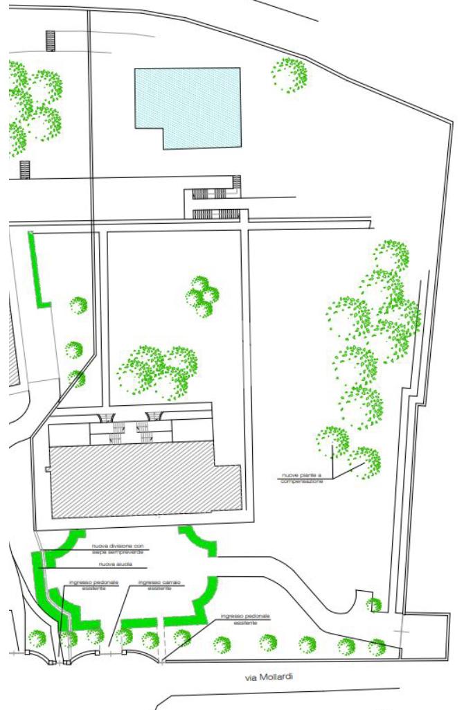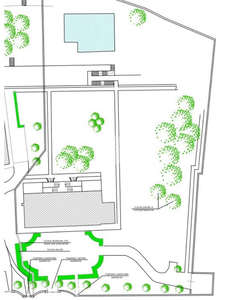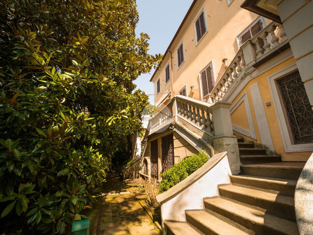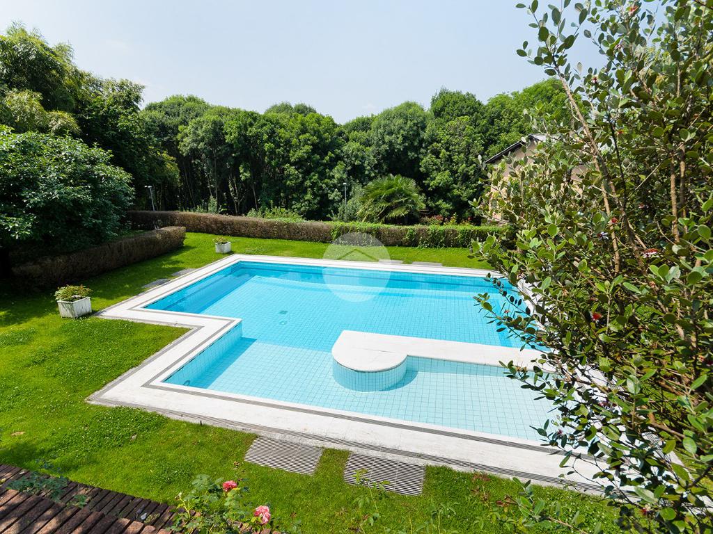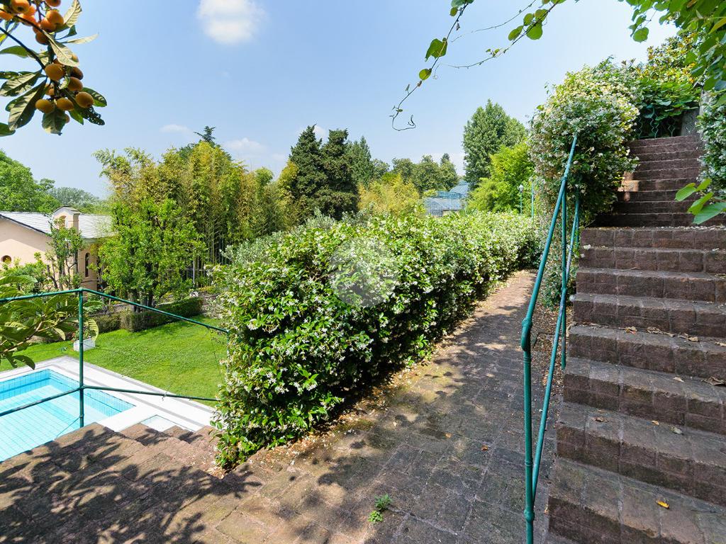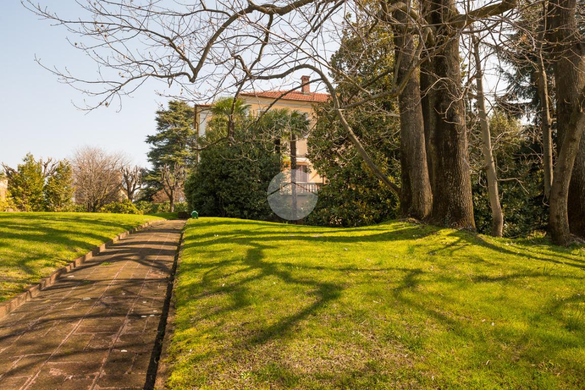 Il parco privato, perfettamente curato e impreziosito da alberi secolari ad alto fusto, è organizzato su diversi livelli terrazzati collegati da una scenografica scalinata e da un montacarichi. Nel livello inferiore si trova una grande piscina con solarium, completa di spogliatoi, bagno e area bar, ideale per momenti di relax e convivialità durante la bella stagione. Nel 2023 sono stati completamente rinnovati gli impianti di illuminazione e irrigazione del parco.