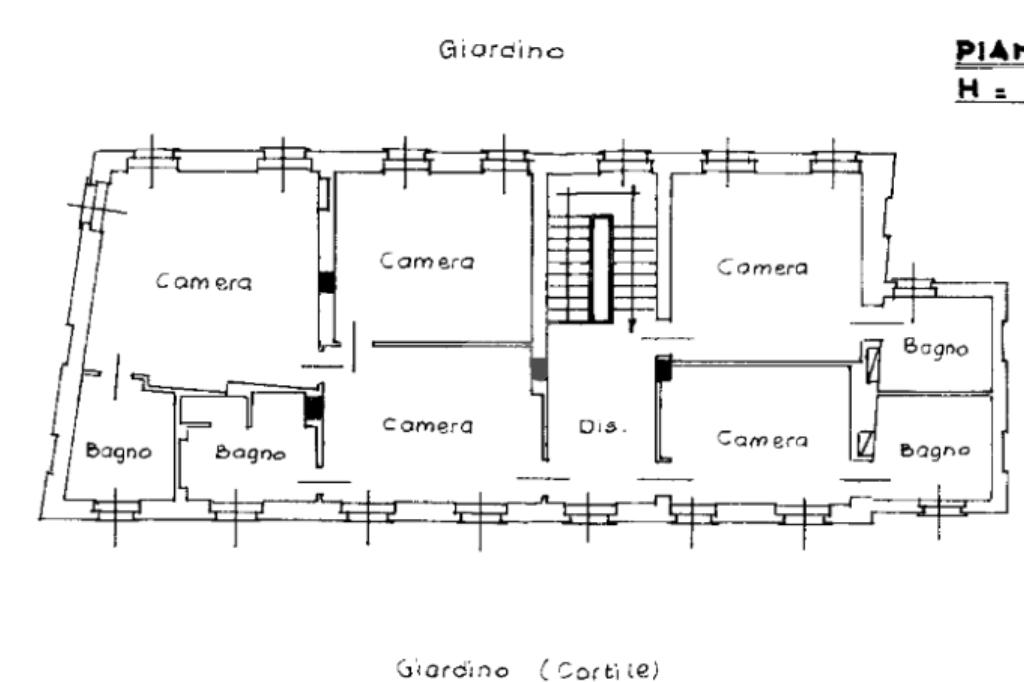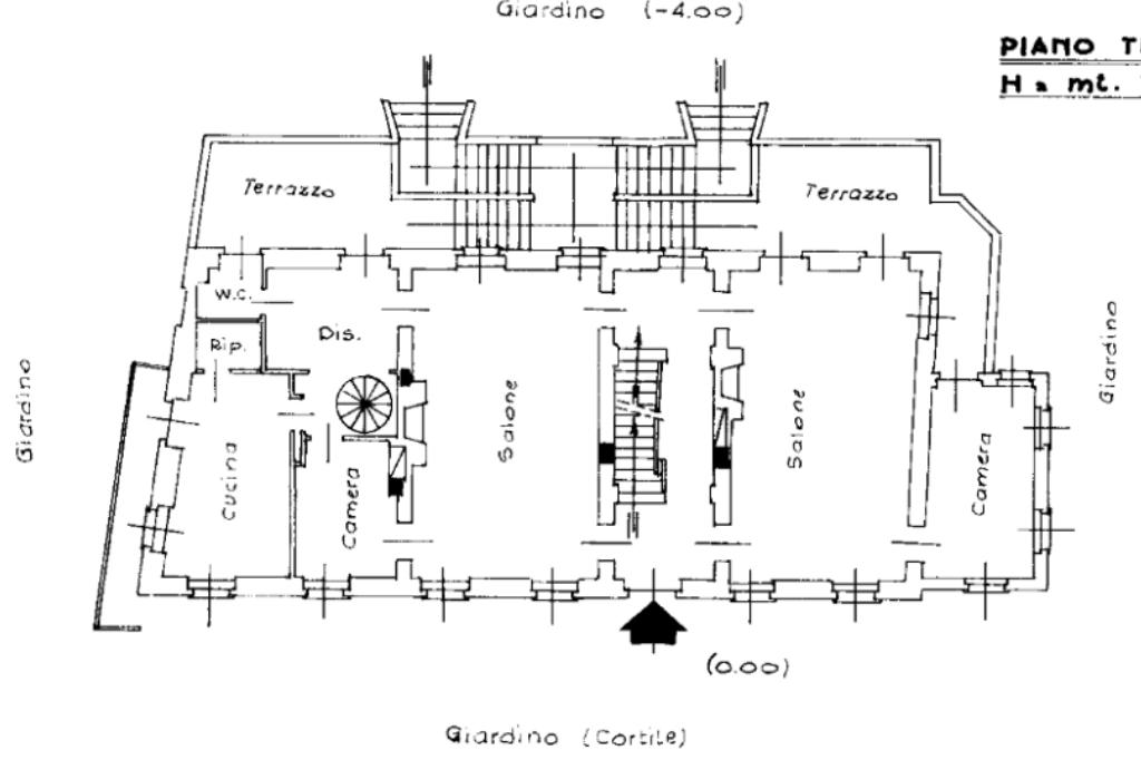 Il piano terreno accoglie gli ospiti con un ampio ingresso che conduce a un luminoso salone di rappresentanza, collegato allo studio e alla sala da pranzo formale, ideale per ricevimenti e momenti conviviali. La cucina abitabile, con zona pranzo, si affaccia sugli spazi esterni. Il livello è completato da un disimpegno, un bagno per gli ospiti e due eleganti terrazzi panoramici che si aprono sul parco, collegati da una scenografica scalinata in pietra che conduce direttamente al giardino.