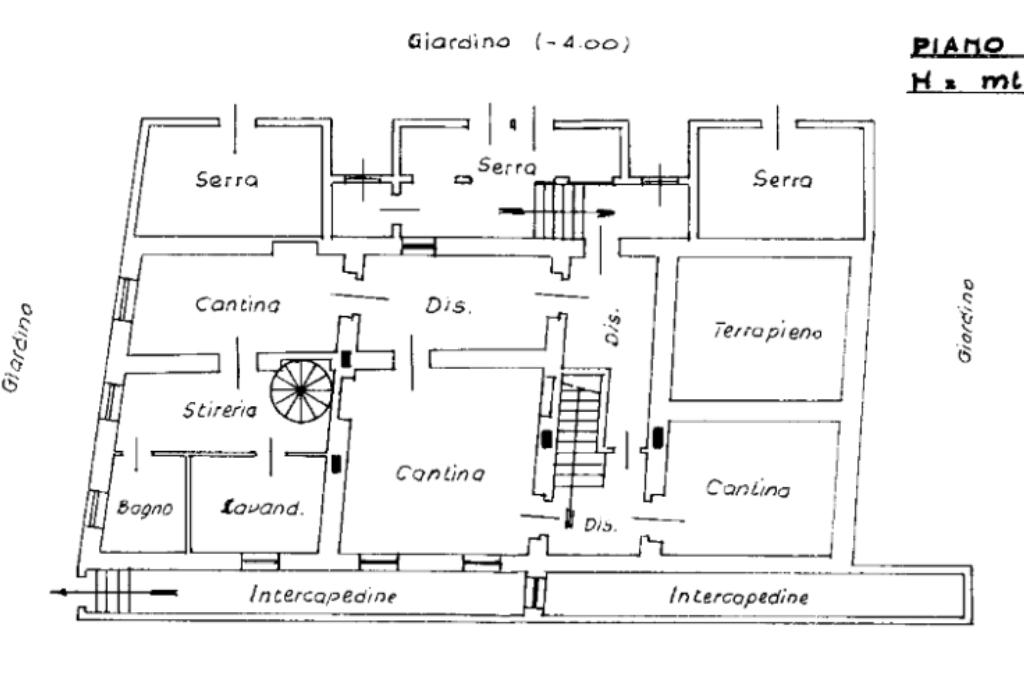 Il piano seminterrato, collegato da due scale di servizio, ospita spazi funzionali e di servizio tra cui due accoglienti tavernette, lavanderia, stireria, bagno di servizio, bagno ospiti, due cantine, un locale deposito/serra con accesso diretto al parco e un locale caldaia.