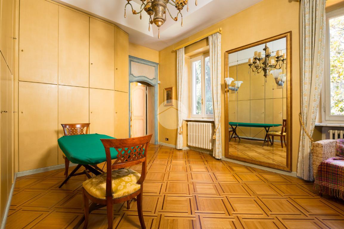 La villa si sviluppa su tre livelli per una superficie complessiva di circa 540 mq ed è stata oggetto di un accurato restauro negli anni Novanta che ha saputo preservare e valorizzare gli elementi architettonici originari. All’interno si respirano ancora l’atmosfera e l’eleganza delle dimore storiche piemontesi, grazie alla presenza di raffinati dettagli decorativi, porte e sovrapporte originali, pavimentazioni in cotto d’epoca nell’ingresso e splendidi parquet dei primi del Novecento.